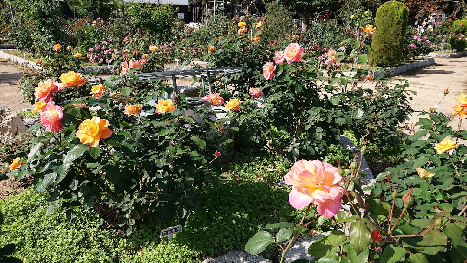 由良川のほとりに戻ってきた。あやべグンゼスクエアでは桜の代わりに、バラ園が見ごろであった。綾部や福知山は知られざる茶の名産地であり、特に宇治抹茶の原料にもなる碾茶は良質なものが育つという。グンゼスクエアのなかには日本茶カフェがあり、そこで地元の抹茶を飲むことができた。動かし続けた脚の熱を緩めるような、清涼な香りと苦味がした。ここからは福知山に向かいつつも、途中で寄り道して茶畑を見ていった。